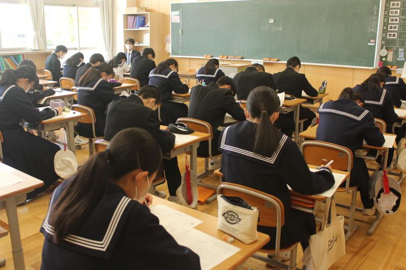 3学年は最上級生になり、入試まで残り1年を切りました。普段の授業を見ても、集中しメリハリのある姿勢が見られます。今日はプリント学習だったようですが、黙々とプリントに向き合っていました。2年生の時よりもテストの回数が増えており、中間テスト前の5月14日にもテストがあります。入試に向けて、どのテストにも全力で取り組みましょう!