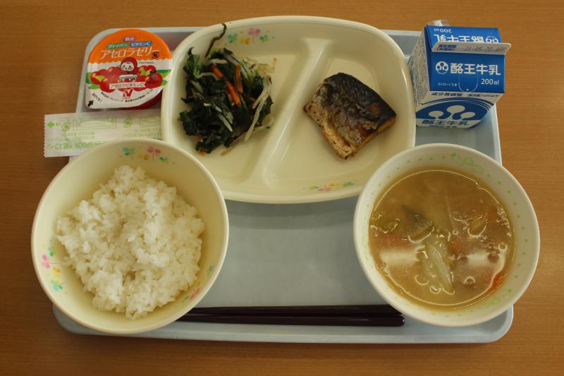 ごはん 牛乳 サバの塩焼き 磯あえ 豚汁 アセロラゼリー