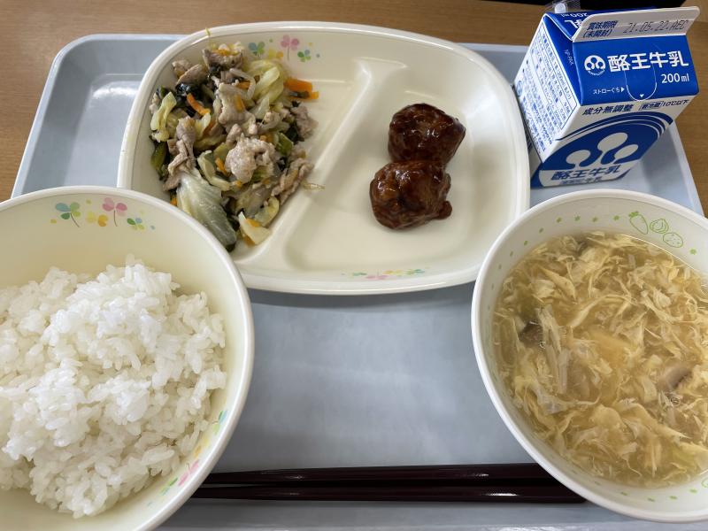 ごはん 牛乳 肉団子 五目野菜炒め かき玉汁