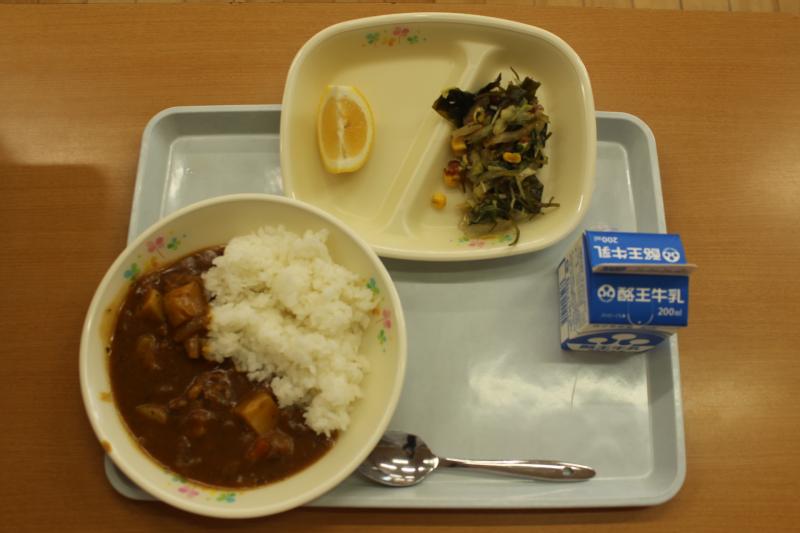 ポークカレーライス 牛乳 海藻サラダ ニューサマーオレンジ