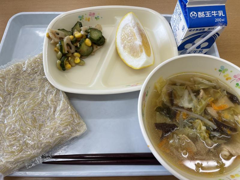 五目タンメン 牛乳 シャキシャキサラダ 河内ばんかん