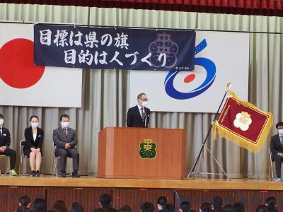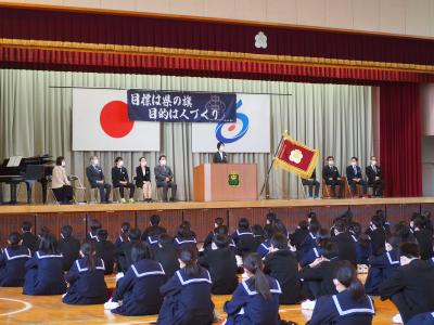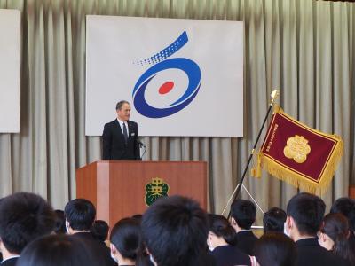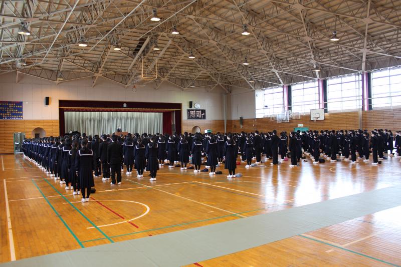 新校長からのあいさつを全生徒が集中して聞いていました!