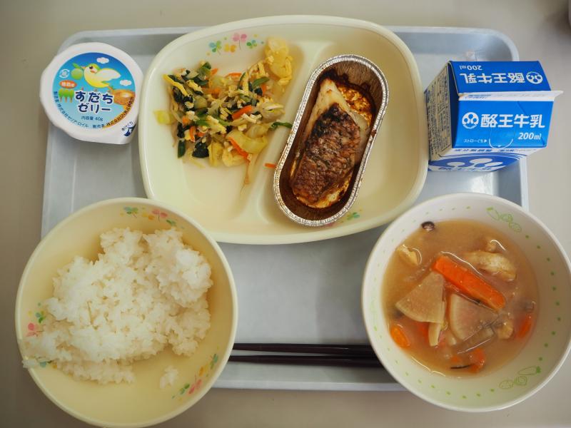 ごはん 牛乳 タイの塩焼き 千種あえ 野菜きのこ汁 お祝いゼリー