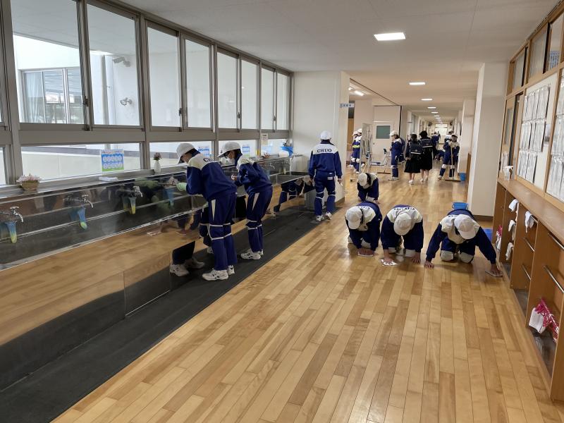 無言で黙々と、全員が正直に校舎に感謝をして清掃を行う。中央中の伝統が生活の当たり前になり