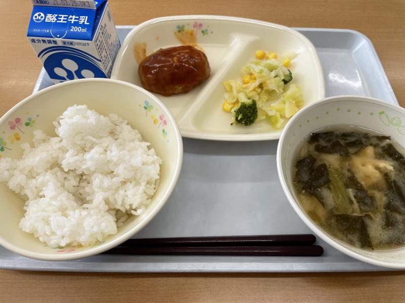 今日はみんな大好きハンバーグでした。給食センターの方々の手作りだそうです。とても美味しくておかわりしている生徒がたくさんいました。