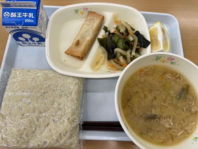 みそラーメン 牛乳 春巻き 大根サラダ 国産オレンジ(はるか)