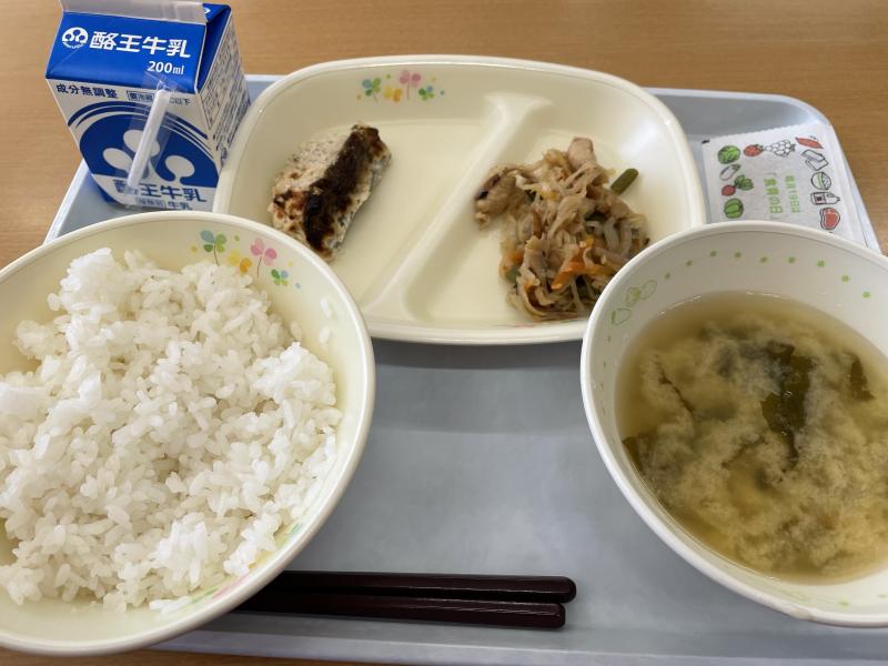ごはん 牛乳 味付きのり サケのみそマヨ焼き 切り干し大根の炒め煮 玉ねぎのみそ汁