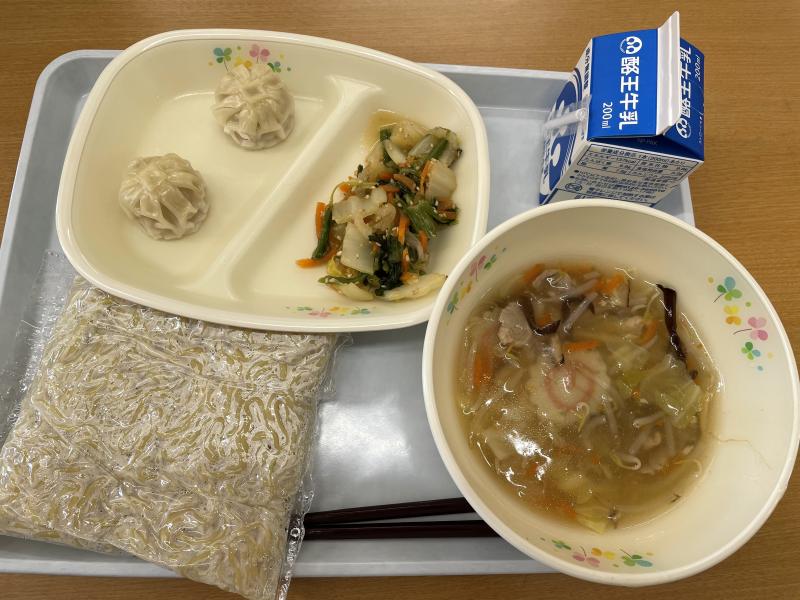 五目あんかけラーメン 牛乳 パオズ 白菜ナムル