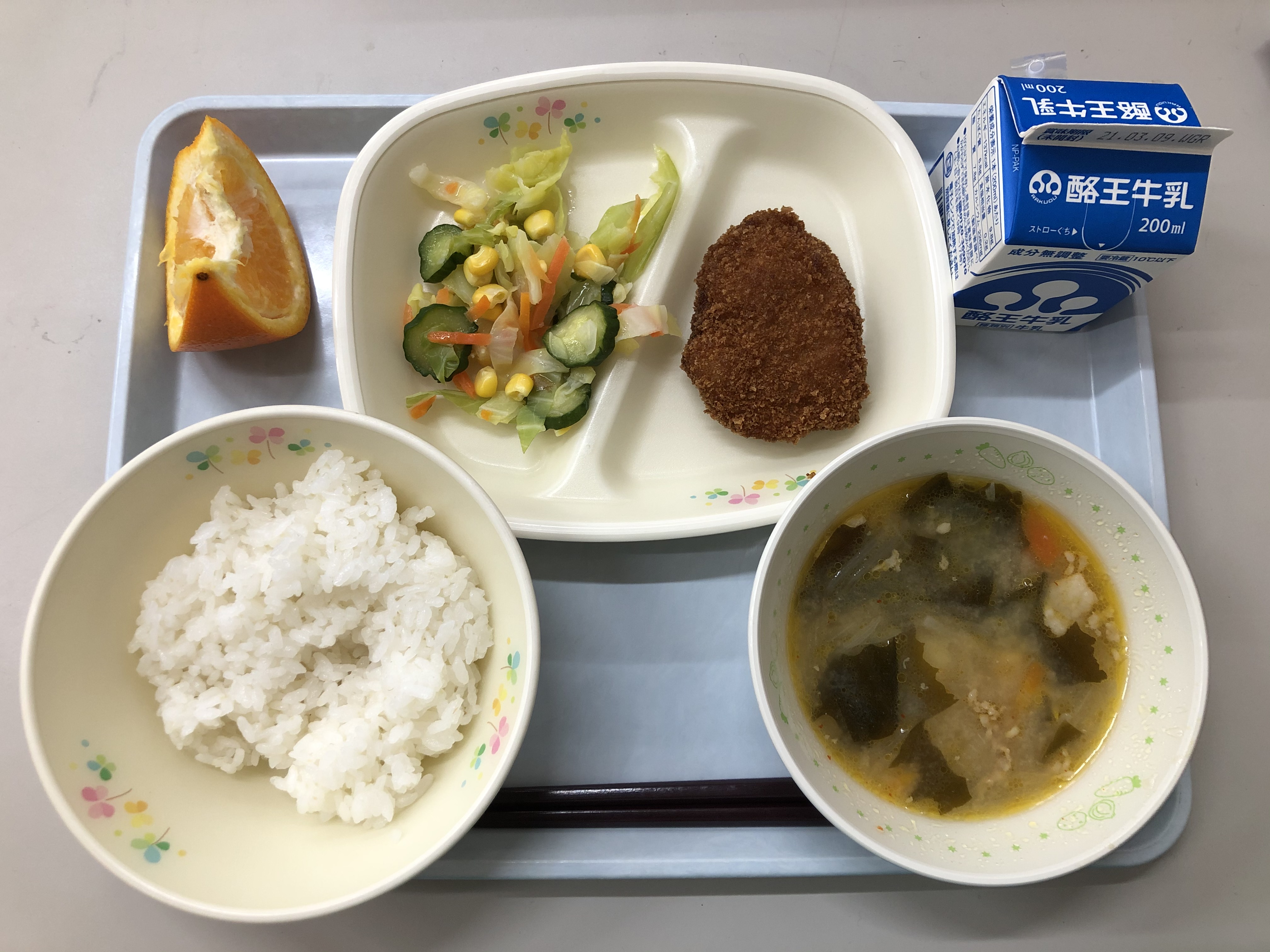 ごはん 牛乳 ヒレカツ コールスローサラダ どさんこ汁 いよかん