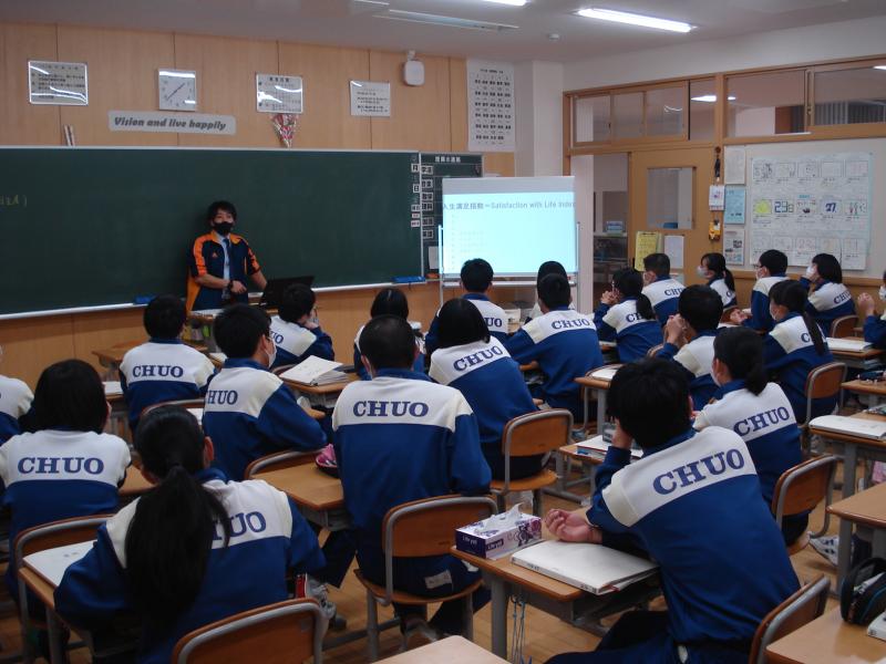 先生が投げかけた問いに対して生徒が考えて話し合ったり、先生の実体験を生徒に話したりし、