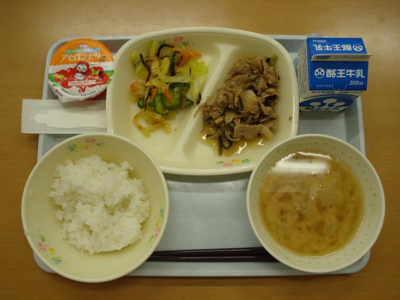 ごはん 牛乳 焼き肉丼の具 塩昆布あえ 厚揚げのみそ汁 アセロラゼリー