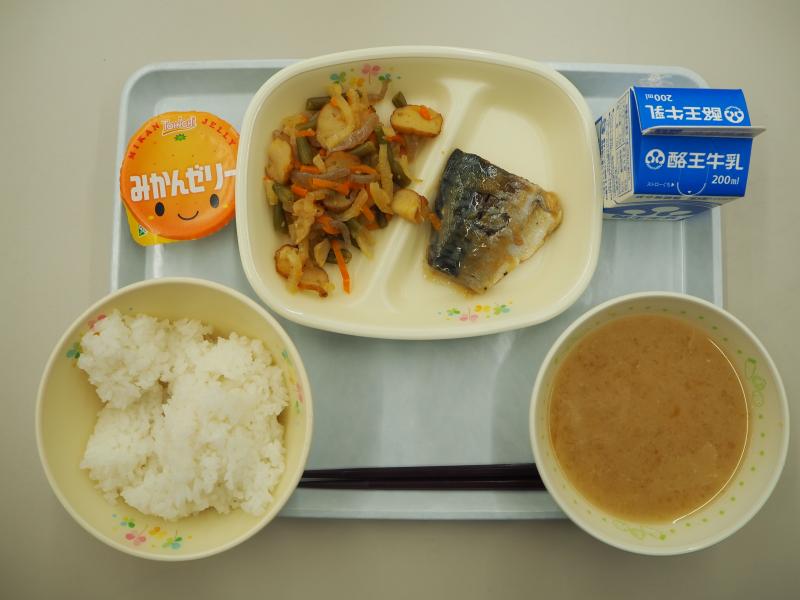 ごはん 牛乳 さばのみそ煮 大根のきんぴら なめこ汁 みかんゼリー