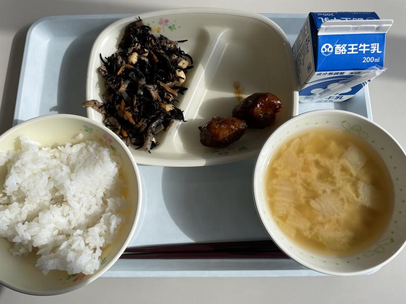 ごはん 牛乳 肉団子 ひじき煮 しみ豆腐のみそ汁