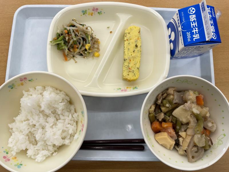 ごはん 牛乳 五目厚焼き玉子 いろどりあえ ちくぜん煮