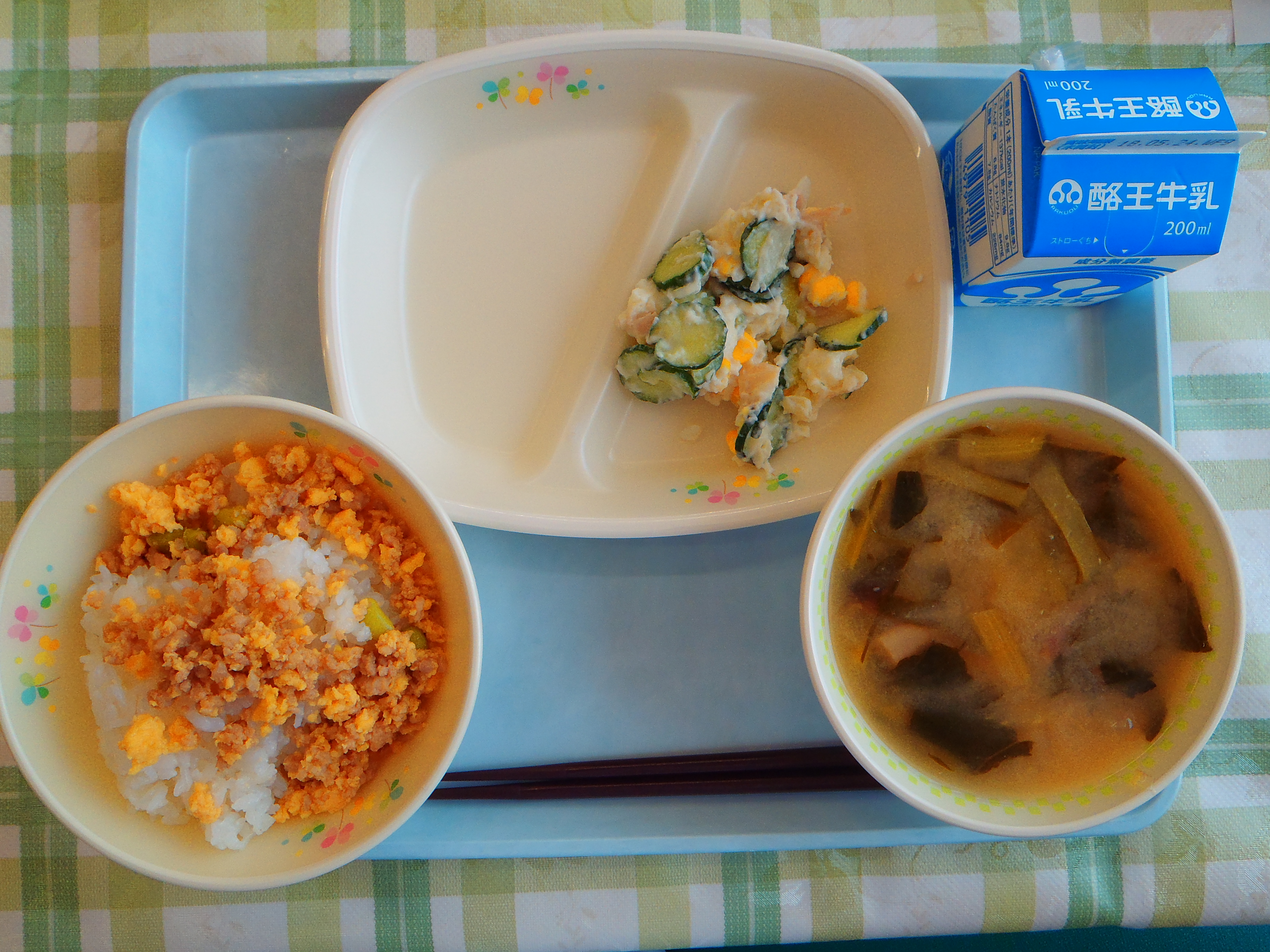 三食ごはん 豆腐のみそ汁 ポテトサラダ 牛乳