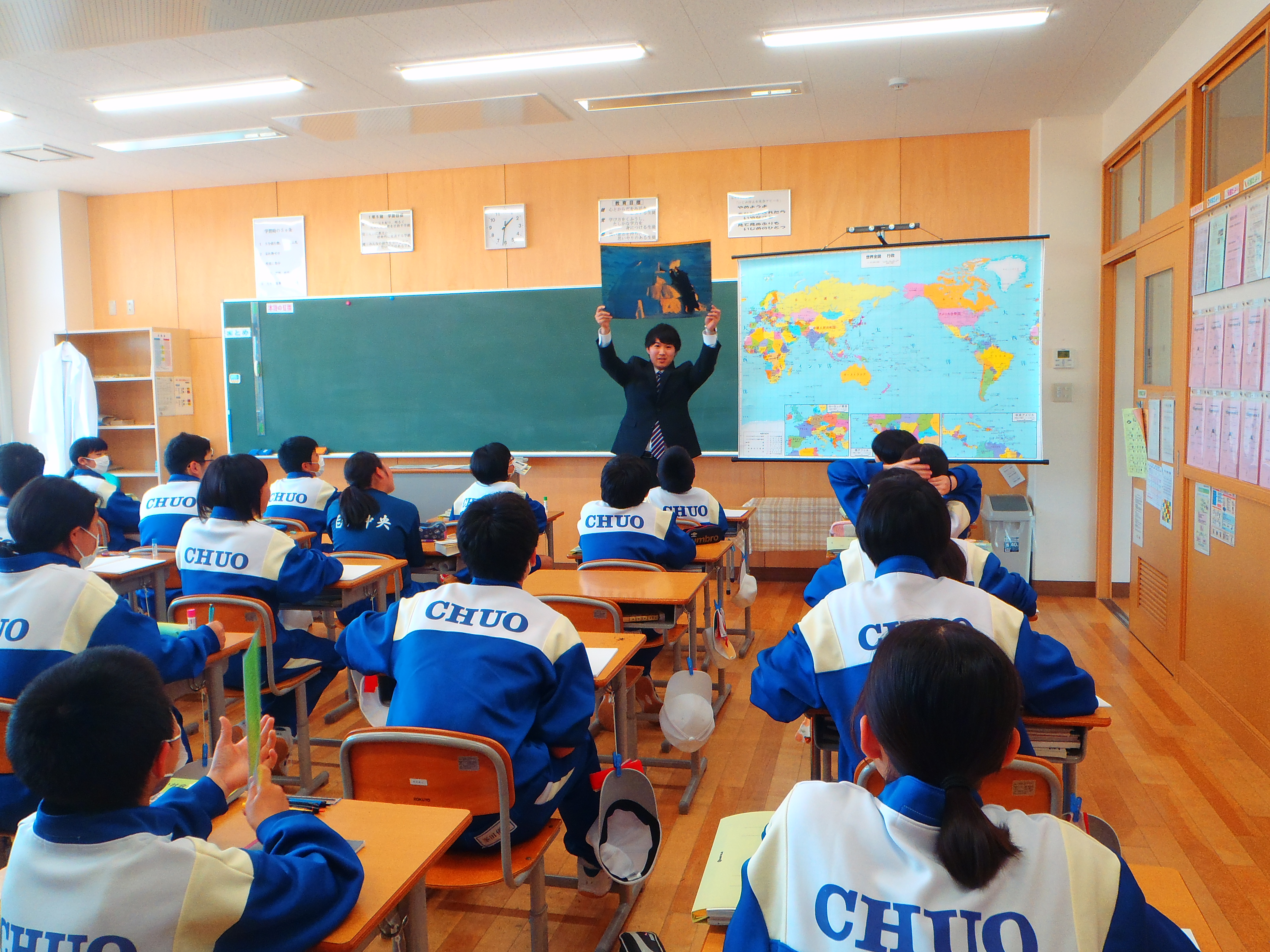 先週より勤務にあたっている教育実習生が今週からは授業実習にも取り組んでいます。