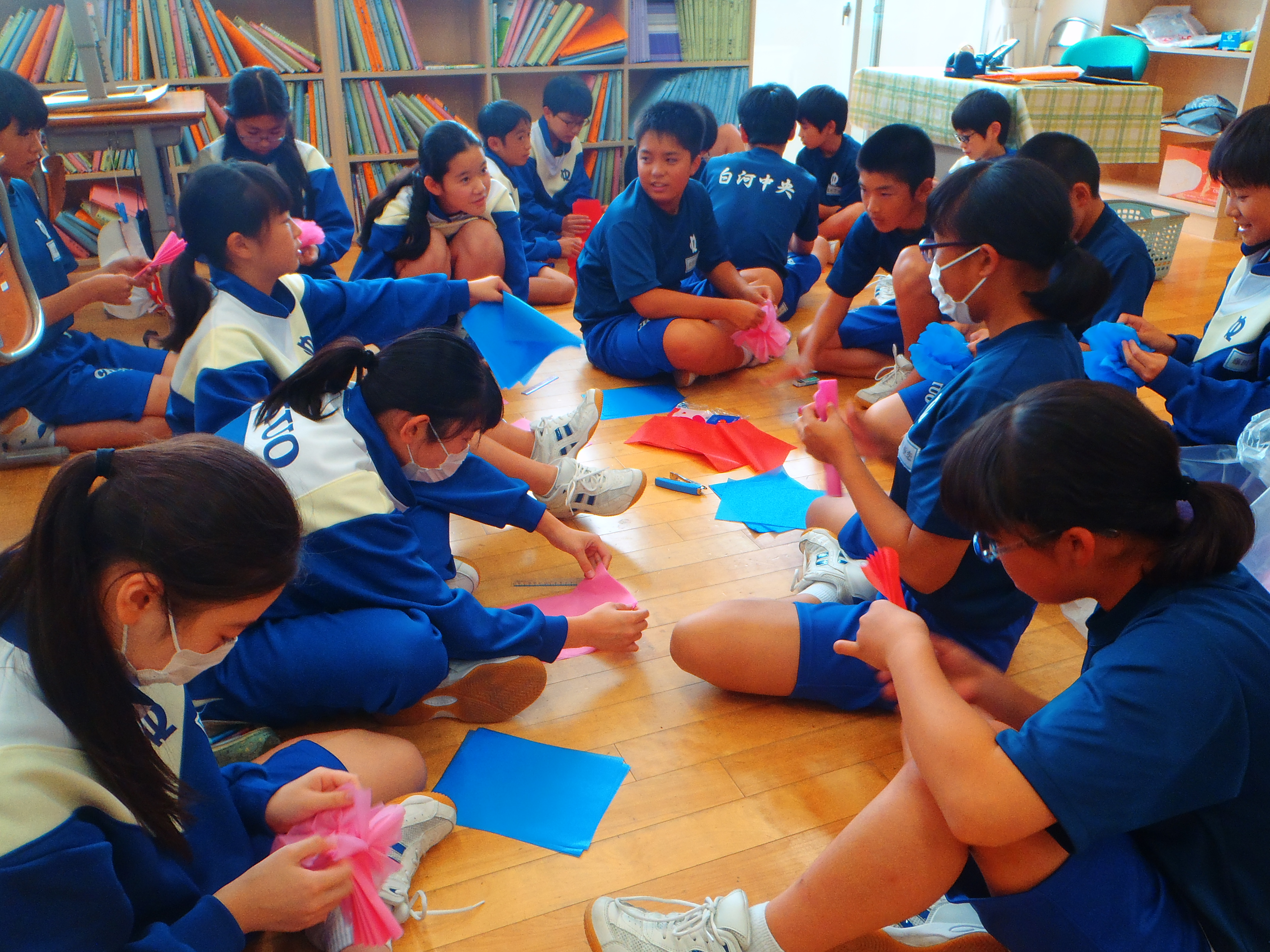 放課後には、ビッグアートカバーの作成が行われたりしています。