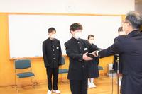 本日、放送朝会に先立ち、令和2年度第1学期学級委員の任命式を行いました。学級委員の生徒は、