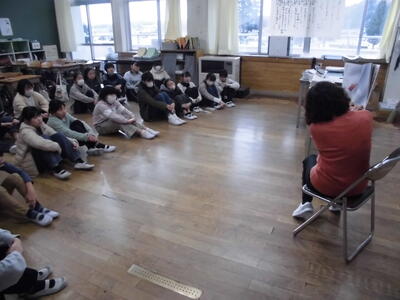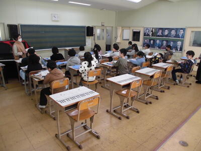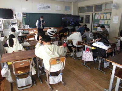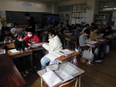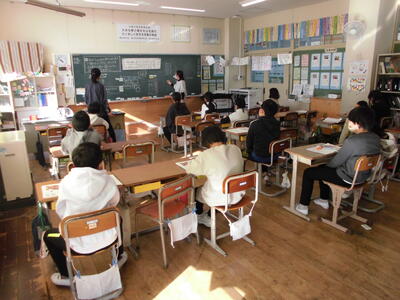 2024年12月18日 10時10分2学期も残り5日となりました。2校時目の授業の様子です。1年生は体育の授業でした。寒さに負けず、体育館で前跳びの練習をがんばっていました。3年生は外国語活動でした。サンタさんとトナカイさんと楽しく活動していました。4年生は道徳の授業でした。楽しい学級にするためにどうすればよいか話し合っていました。今日も子どもたちは元気に学校生活を送っています。