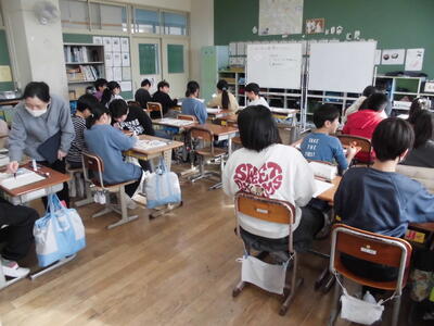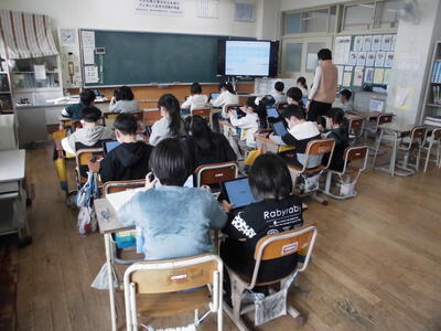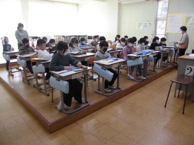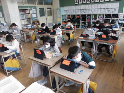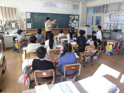 青空が広がる午前中です。2校時目の授業の様子です。4年生は国語の授業でした。災害について文章を書くために、どんな題材にするか話し合っていました。5年生は算数の授業でした。三角形の面積をどうしたら求められるか学習していました。6年生は家庭科の授業でした。調理実習の計画を班ごとに話し合っていました。子どもたちは2学期の学習のまとめをがんばっています。