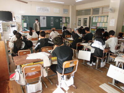 2学期も残り5日となりました。2校時目の授業の様子です。1年生は体育の授業でした。寒さに負けず、体育館で前跳びの練習をがんばっていました。3年生は外国語活動でした。サンタさんとトナカイさんと楽しく活動していました。4年生は道徳の授業でした。楽しい学級にするためにどうすればよいか話し合っていました。今日も子どもたちは元気に学校生活を送っています。