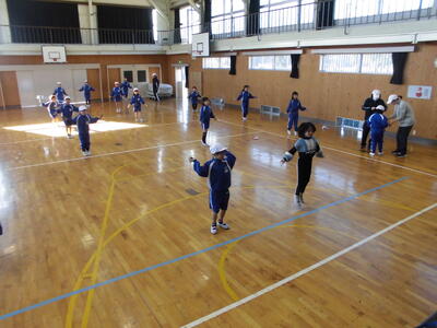 校庭にうっすら雪が積もった寒い朝となりました。2校時目の授業の様子です。2年生は体育の授業でした。音楽に合わせて、前跳びを2分間がんばって跳んでいました。4年生は算数の授業でした。図形の周りの長さを求める問題を工夫して解いていました。5年生も算数の授業でした。三角形の面積を求める公式をみんなで考えていました。週の初めの月曜日ですが、子どもたちは集中して学習に取り組んでいます。