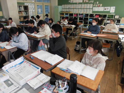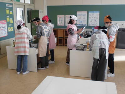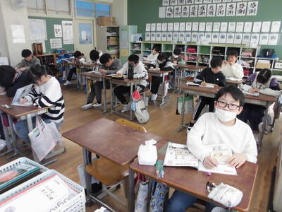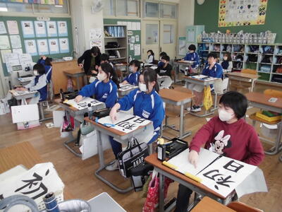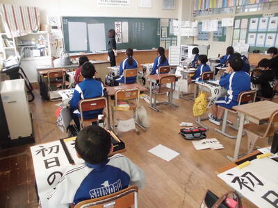 2学期も残すところ2週間となりました。2校時目の授業の様子です。2年生は体育の授業でした。縄跳びの前跳びを2分間続けて跳ぶ練習をがんばっていました。4年生は書写の授業でした。毛筆で「初日の出」の練習を集中して行っていました。6年生は家庭科の授業でした。調理実習で一食分のおかず作りを行います。おいしくできるといいですね。今日も子どもたちは、寒さに負けず元気に生活しています。
