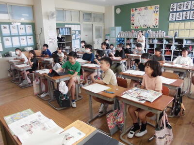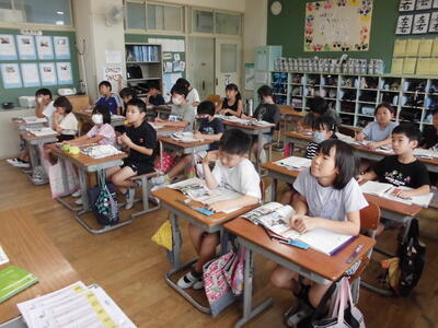 曇り空の過ごしやすい午前中です。2校時目の授業の様子です。4年生は社会の授業でした。災害についての学習計画を立てていました。5年生は算数の授業でした。四角形の角の和について考えていました。6年生は家庭科の授業でした。ナップザックなどの袋づくりの計画を立てていました。今日も子どもたちは、集中して学習に取り組んでいます。