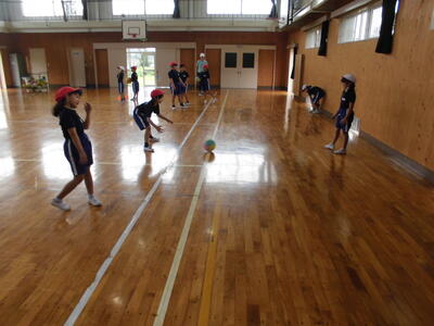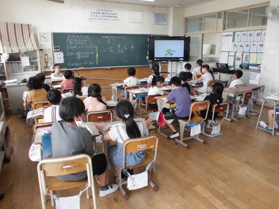 曇り空の午前中です。台風の進路が心配です。2校時目の授業の様子です。1年生は算数の授業でした。数の数え方を話し合っていました。2年生は体育の授業でした。ボールを転がして楽しく運動していました。3年生は理科の授業でした。ひまわりやオクラの花の咲く様子を動画で確認していました。今日も子どもたちは元気に活動しています。