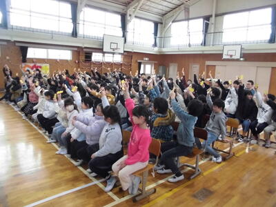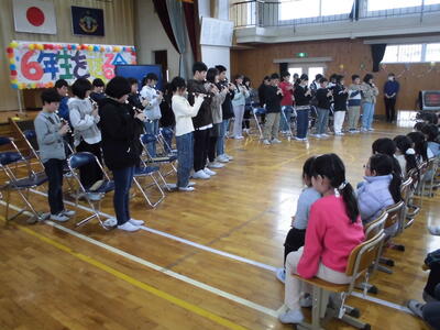 3月5日(火)のわくわくタイムに、全校生が体育館に集まり6年生を送る会を行いました。今までお世話になった6年生に感謝の気持ちを伝えるために、5年生が中心になり準備を進めてきました。6年生の誰かを当てるクイズや在校生からのプレゼント贈呈と感謝の言葉など心温まる時間となりました。6年生にとっても大信小学校でのよい思い出が1つ増えました。5年生のみなさん、準備や会の運営ありがとうございました。最上級生になるという自覚ある姿がたくさん見られました。