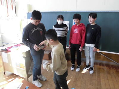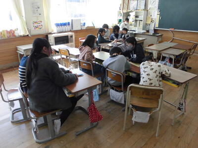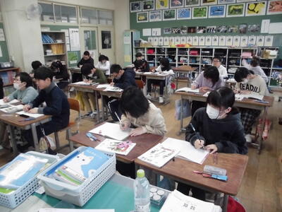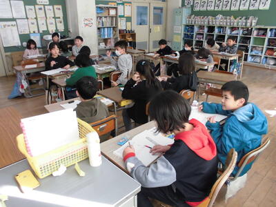 今日も青空が広がる2月とは思えない暖かい午前中です。昨日のわくわくタイムの時間に、1年生から5年生がなかよし班ごとに集まり、6年生へのメッセージ書きを行いました。お世話になった6年生に感謝の気持ちを込めて丁寧に書いていました。5年生は、下級生のお世話をしっかりしており、最上級生になるという自覚が感じられました。