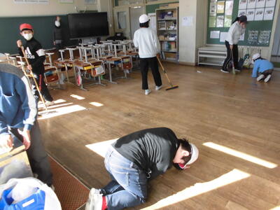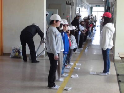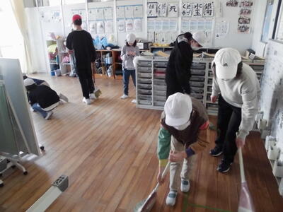 清掃活動は縦割り班で行っています。6年生の班長さんを中心に、みんなで協力して清掃を行っています。今日も自分たちが使う校舎を、心を込めてきれいにすることができました。