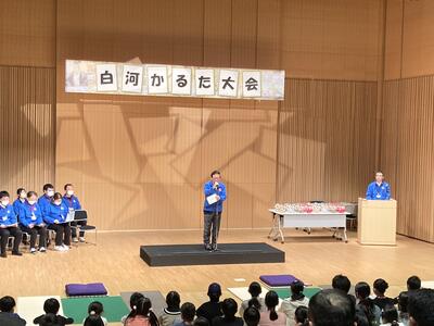 2月18日(日)に第1回白河かるた大会がコミネス小ホールで行われました。大信小学校からは1年生と4年生のチームが参加しました。他の学校のチームの人たちと対戦し、交流しながら白河の歴史にふれることができました。2チームとも集中してがんばっていました。1年生チームは低学年の部で4位に入賞しました。参加したみなさん、保護者の皆様お疲れさまでした。