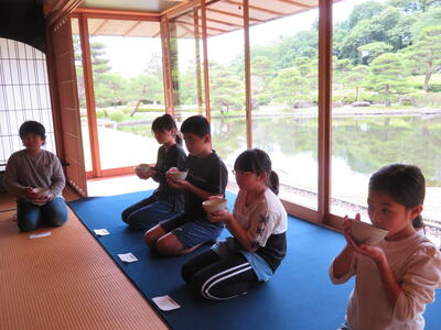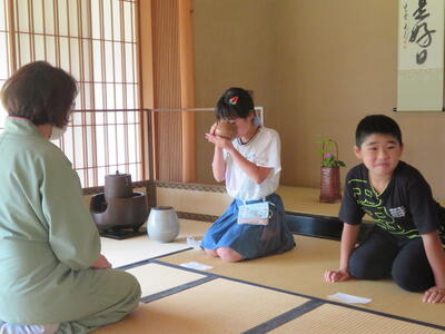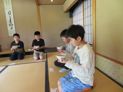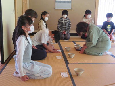 いつも元気いっぱいの子どもたちですが、神妙な面持ちでお菓子とお茶をいただき、日本の伝統文化のよさをじっくりと味わうことができたようです。