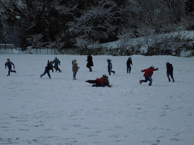 2024年3月8日 10時37分校庭が銀世界の午前中です。2、3校時目の授業の様子です。1年生は体育の授業でした。体育館でムカデ鬼ごっこをして楽しく体を動かしていました。2年生も体育の授業でした。校庭で楽しく雪遊びをしていました。6年生は音楽の授業でした。体育館で卒業式の式歌の練習を一生懸命行っていました。今日も子どもたちは、楽しく真剣に学習に取り組んでいます。