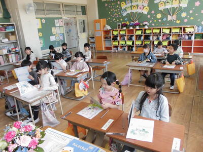 朝から暖かく、大信小の花々もきれいに咲いています。2校時目の授業の様子です。1年生は書写の授業でした。手本をよく見て書写ノートに丁寧に書いていました。2年生は体育の授業でした。校庭でかけっこやリレーを元気に走っていました。5年生は書写の毛筆の授業でした。「道」を筆づかいに気をつけながらしっかり練習していました。週始めの月曜日、子どもたちは元気に活動しています。