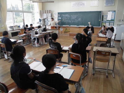 2024年5月27日 10時19分風の強い午前中となっています。2校時目の授業の様子です。2年生は体育の授業でした。昆虫の動きを全身を使って楽しく表現していました。3年生は国語の授業でした。新しい漢字の筆順や読み方を練習していました。4年生は算数の授業でした。わり算の筆算の仕方を丁寧に確認しながら学習を進めていました。週の始めの月曜日ですが、子どもたちは元気に生活しています。