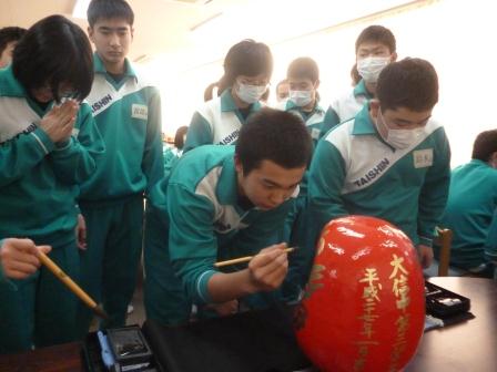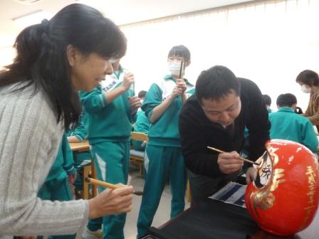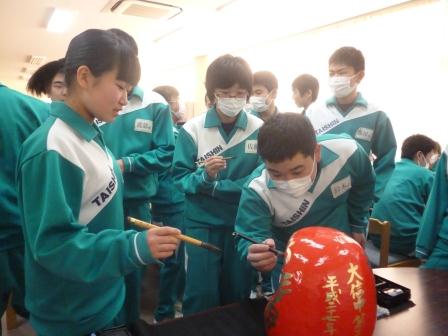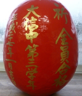 1月20日、3年生49名全員の進路達成合格を祈願して「白河だるま」に魂を注入しました。本日は生徒、3年生職員全員出席しており、一人一人が心を込めてだるまに目を入れました。最後に全員で合格の唱和をし、受験に臨む覚悟をしました。「受験生 入試の壁を突破して 新たな道へ 歩んでいく」(T君)、「受験生 合格を聞くその日まで 弱い自分との闘いは続く」(Y君)、「受験生 自分で決めた進路へと進むためには努力あるのみ」(Yさん)、「冬を越え花を咲かせるその時まで ひたすら前進 突き進むのみ」(Aさん)、3年生の短歌からは、神頼みだけではない意気込みを感じます。祈る全員合格!