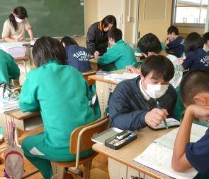 学習に真剣みが増してきている3年生ですが、「相似の図形」の学習に苦戦。週2回は、3人の数学の先生による個別対応の授業で習熟度アップを図っています。