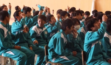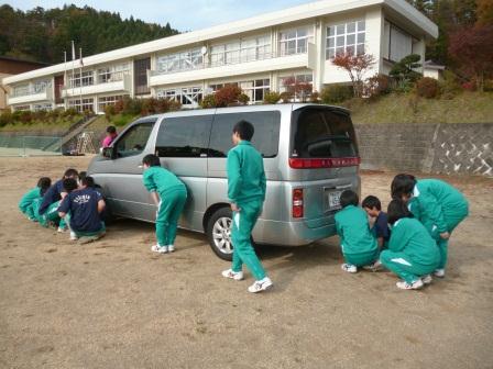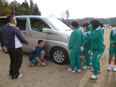 2014年11月11日 13時22分 保健体育の授業で、事故から身を守るための実地体験をしました。車の運転手の死角になる所、車の内輪差、自転車の制動距離など実地体験で、事故から身を守るためにどうしなければならないか納得していました。日常の生活で生かして、事故絶無につなげましょう。
