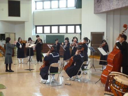 11月3日、大信地域文化祭が行われました。展示された10部門の表彰、標語コンクールの表彰、大信中からは弦楽合奏披露した音楽祭、芸能発表、のど自慢発表、模擬店や土砂災害模型・防災マップのブースなど多彩な催し物がありました。この日の演奏をもって、音楽部の3年生は引退となりました。最後に、息のあったいい演奏ができ3年生も満足した様子でした。