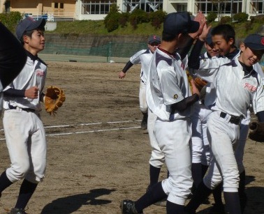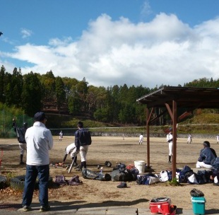 11月3日、1・2年生対3年生の送別試合を行いました。序盤、練習をしていない3年生に1点を入れた1・2年生チームでしたが、やはりまだまだ3年生の力は健在。すぐ4点を入れられ逆転。それでも保護者の方々も入って楽しい秋の一日となりました。