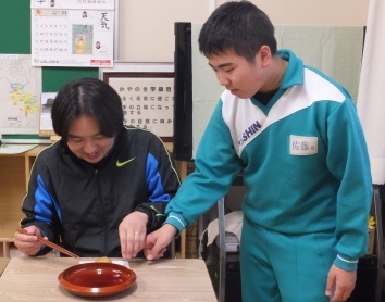 10月をもって引退となる3年生の学芸部。いままでの感謝をこめて、先生方を迎えてお茶会を開きました。前日には、自分たちでつくったフレンチトーストでもてなし、2日間にわたって全員の先生方をお招きしました。腕を上げたお茶に先生方も、とてもうれしそうでした。実は、学芸部のおもてなしに心を癒されていた先生が少なくありませんでした。感謝のお茶会ありがとうございました。
