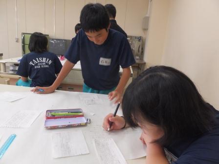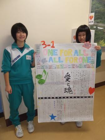 2014年10月22日 13時43分 昨日の17:00までの締切だった壁新聞が各クラスとも出そろいました。締切時間ぎりぎりまで心配されたクラスもありましたが、すべてのクラスが締切に間に合いました。今回のポイントは、論説にあたる主張文記事に力を入れたこと。読み手を唸らせる内容になっているか、ぜひご一読ください。