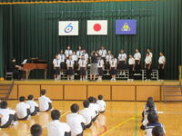 始業式の後、今週行われる東西音楽祭合唱と東西英弁大会の発表が行われました。特に暑かった今年の夏。毎日、登校し練習に励んでいました。この努力が発揮できるよう、全校生で大きな拍手で応援しました。