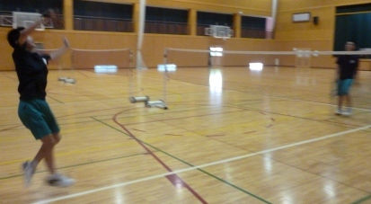 猛暑で体育館の部活動練習も厳しい状況が続いています。炎暑になる前に早く来てコートで練習するバドミントン部員もいます。熱中症対策を万全にしても厳しい暑さです。