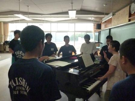 8月17日に行われる音楽コンクールに向けて、音楽部の練習は力が入ってきました。お互いの音を聞きあい、響きを確認しあっていました。残り数日ですが、気持ちを一つにがんばりましょう。