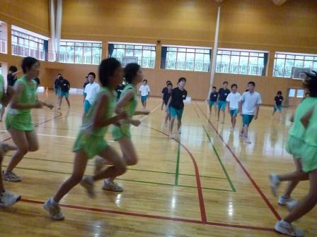 8月11日、台風の被害はありませんでしたが、今朝は小雨のため駅伝練習は体育館で行いました。継続して練習している姿に成長ぶりがうかがえます。