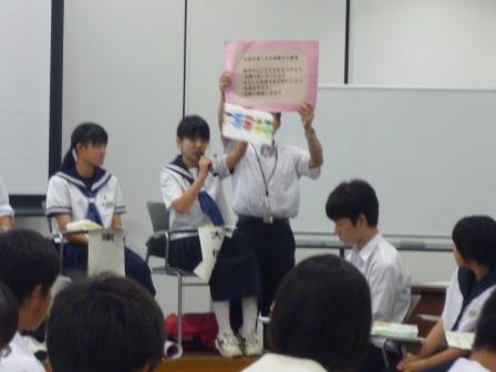 市内8校の今年度の取り組みと今後の取り組みでは、どの学校も全校生から募集したスローガンをつくり、全校集会で発表したり、校内に掲示したり、生徒会新聞に掲載したりと見える形で運動をしていました。険悪ないじめはなくとも、言葉でのからかいや仲間外し、ラインでの悪口などは現実にあることをふまえ、どうしたらなくせるのか意見をフロアー参加者からも活発に出されました。 保護者の方や先生、一般の方からも意見をいただき、これからも被害者・加害者にならないために、具体的な活動を考えて実践していこうと確認しあいました。