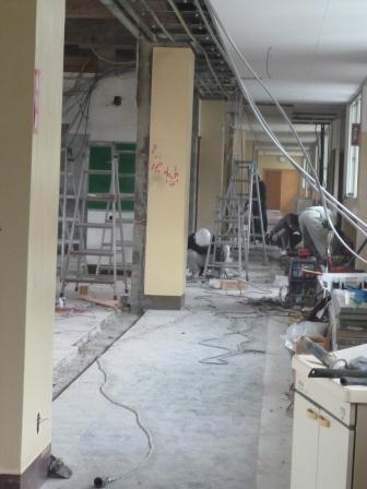 夏季休業中に職員室、校長室、放送室等の改修が入っています。いつもの玄関からは入れません。生徒の皆さんには生徒昇降口からの出入りについて十分気をつけるように話しましたが、工事物品も置いてありますので細心の注意をして下さい。